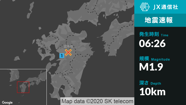 1月2日 6時26分頃発生した地震(最大震度1)