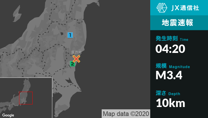1月6日 4時20分頃発生した地震(最大震度2)