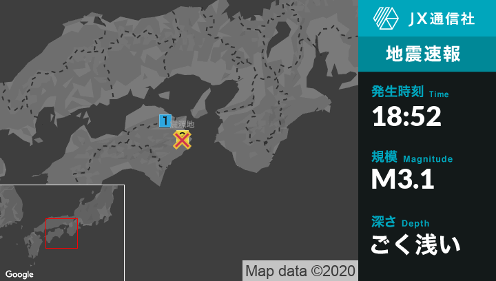 1月22日 18時52分頃発生した地震(最大震度3)