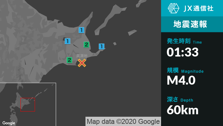 1月29日 1時33分頃発生した地震(最大震度2)
