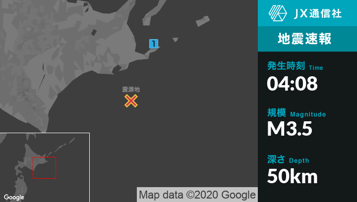 5月28日 4時08分頃発生した地震(最大震度1)