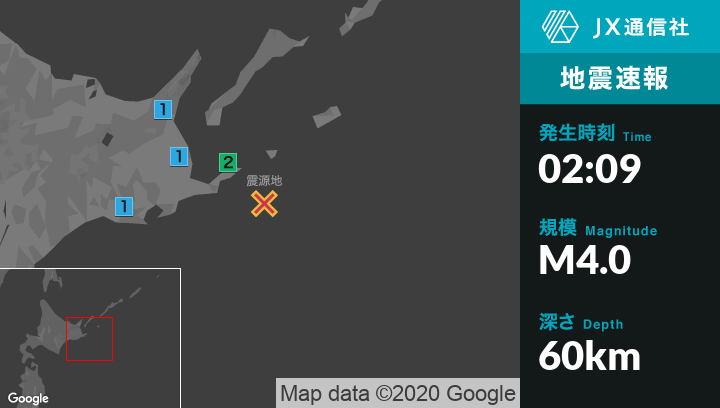 6月12日 2時09分頃発生した地震(最大震度2)