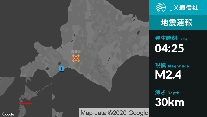 6月20日 4時25分頃発生した地震(最大震度1)