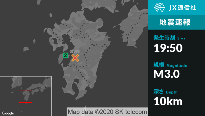7月10日 19時50分頃発生した地震(最大震度2)
