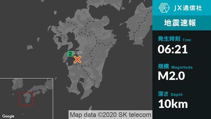 8月20日 6時21分頃発生した地震(最大震度2)