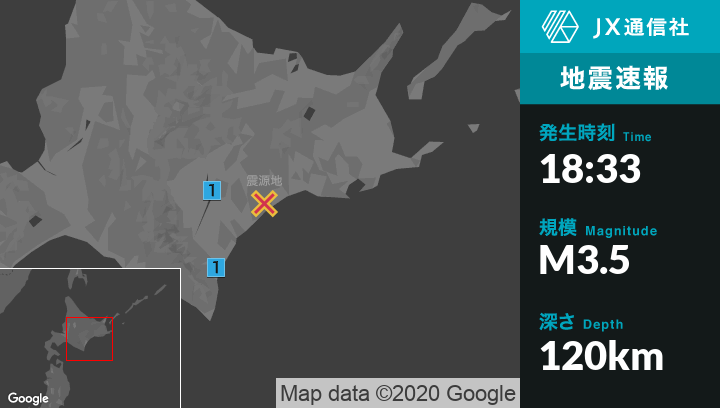 9月4日 18時33分頃発生した地震(最大震度1)