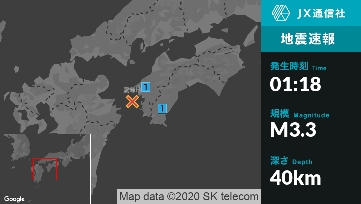 12月3日 1時18分頃発生した地震(最大震度1)
