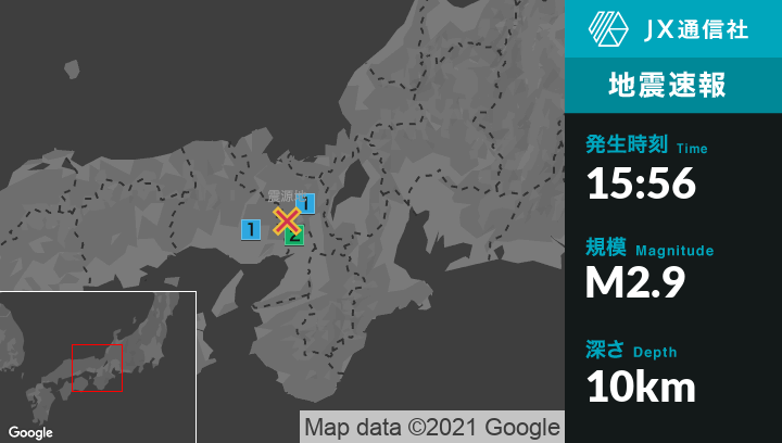 3月21日 15時56分頃発生した地震(最大震度2)