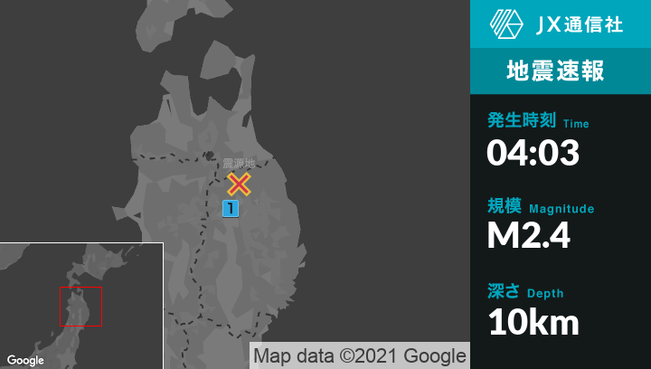 6月21日 4時03分頃発生した地震(最大震度1)