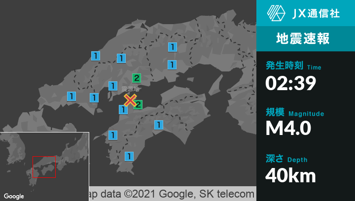 7月8日 2時39分頃発生した地震(最大震度2)