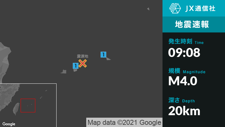 7月9日 9時08分頃発生した地震(最大震度1)