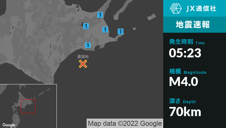 1月10日 5時23分頃発生した地震(最大震度1)