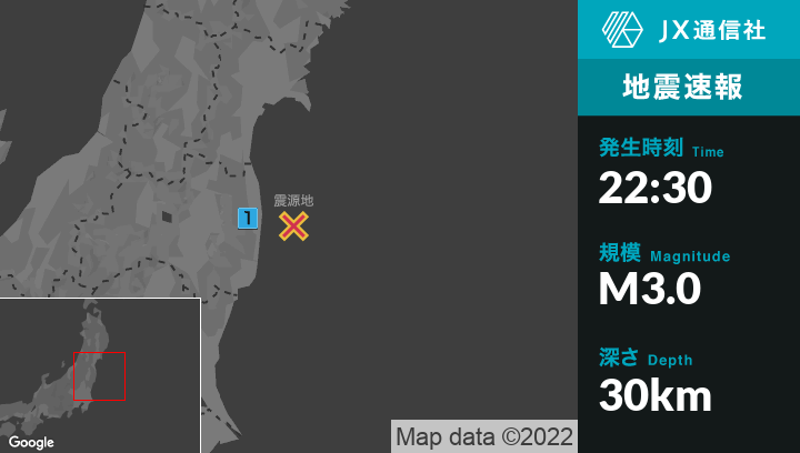 1月22日 22時30分頃発生した地震(最大震度1)