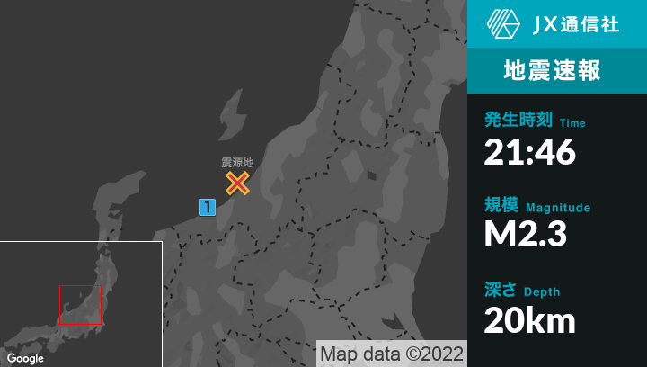 5月8日 21時46分頃発生した地震(最大震度1)