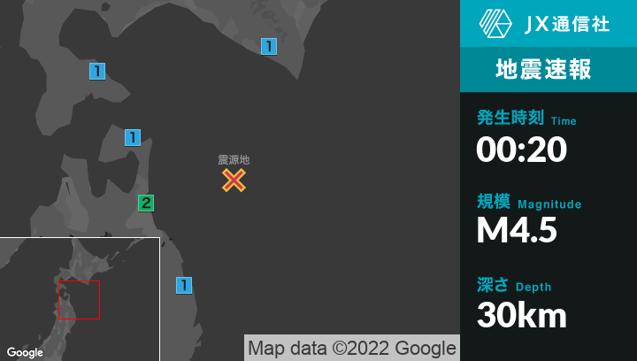 12月6日 0時20分頃発生した地震(最大震度2)