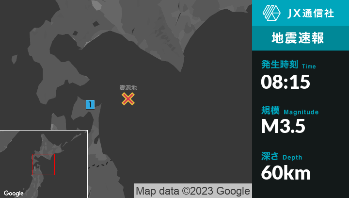 1月1日 8時15分頃発生した地震(最大震度1)