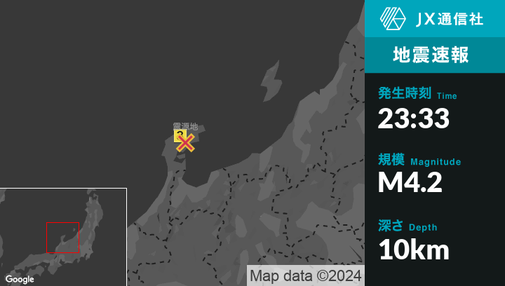 | 発生時刻 | 2024年1月3日 23時33分頃 |