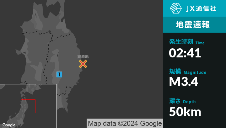 1月8日 2時41分頃発生した地震(最大震度1)