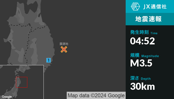 2月24日 4時52分頃発生した地震(最大震度1)