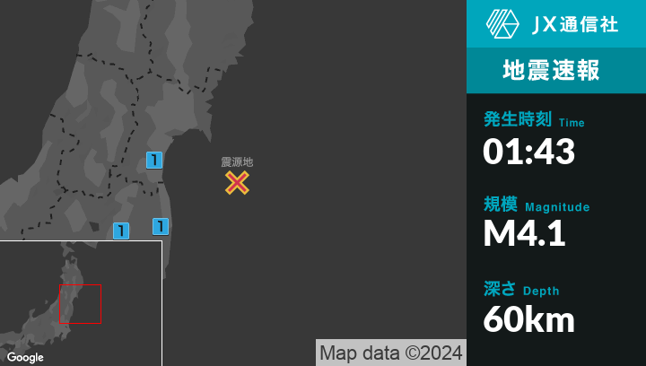 3月7日 1時43分頃発生した地震(最大震度1)