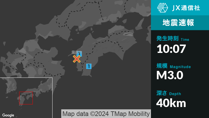 3月18日 10時07分頃発生した地震(最大震度1)