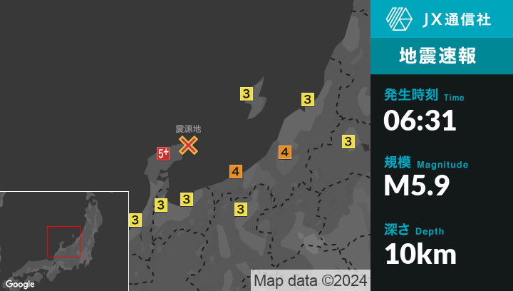 | 震度5強 | - 石川県