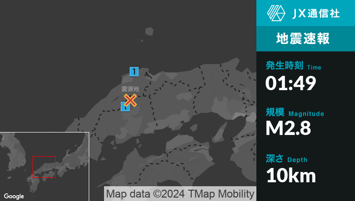8月1日 1時49分頃発生した地震(最大震度1)