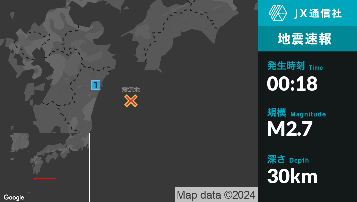 8月30日 0時18分頃発生した地震(最大震度1)