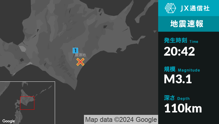 9月1日 20時42分頃発生した地震(最大震度1)