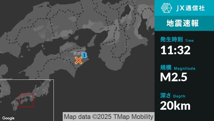 1月25日 11時32分頃発生した地震(最大震度1)