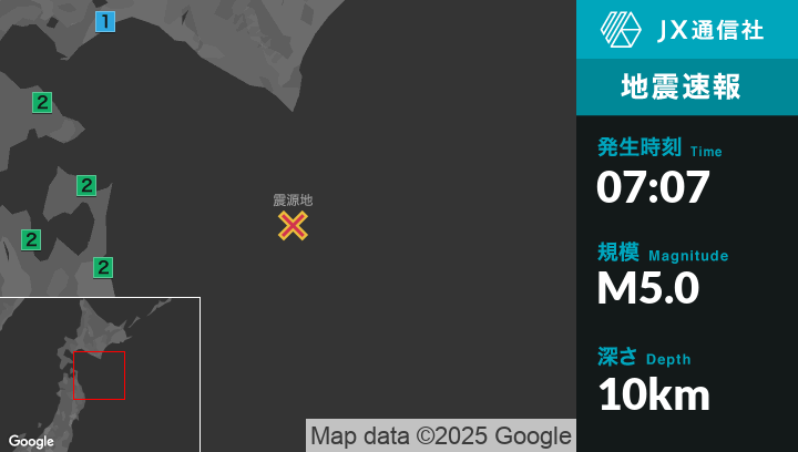 この地震により、日本の沿岸では若干の海面変動があるかもしれませんが、被害の心配はありません。