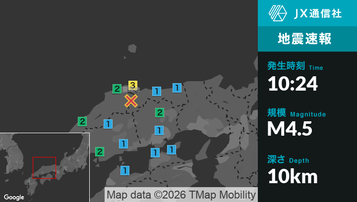 1月6日 10時24分頃発生した地震(最大震度3)