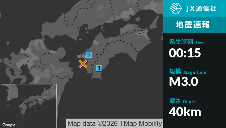 2月22日 0時15分頃発生した地震(最大震度1)
