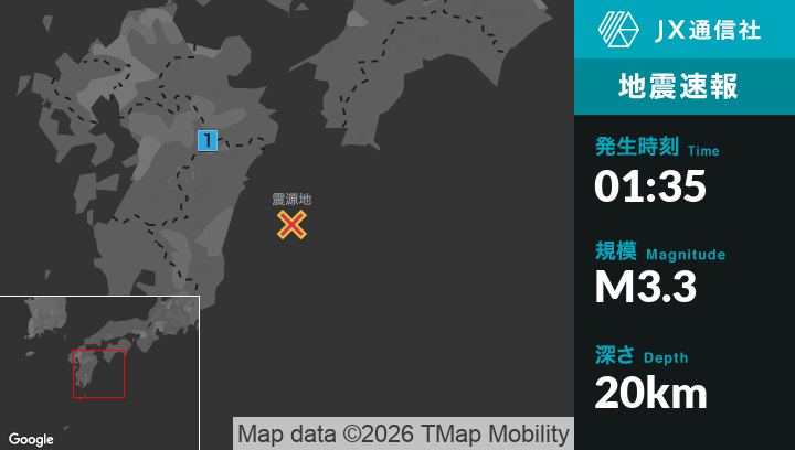 3月18日 1時35分頃発生した地震(最大震度1)