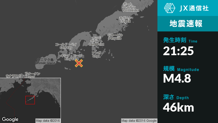| 震源地 | アラスカのCold Bayから南東79kmの地点 |