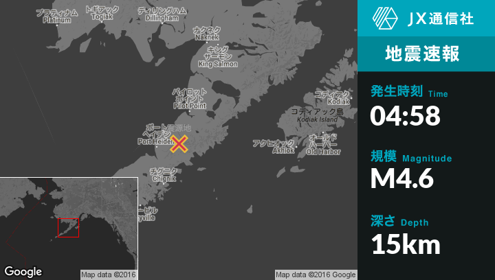 | 震源地 | アラスカのChignik Lakeから北北東103kmの地点 |