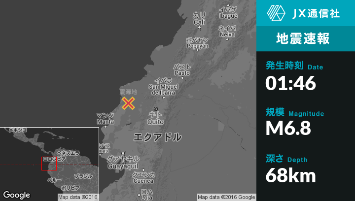 | 震源地 | エクアドルのRosa Zarateから西南西29kmの地点 |
