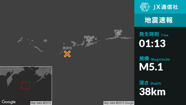 | 震源地 | アラスカのAmatignak Islandから東41kmの地点 |