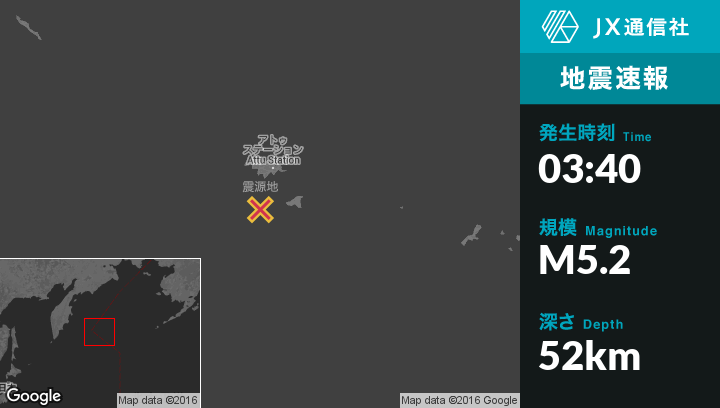 | 震源地 | アラスカのAttu Stationから南南西56kmの地点 |