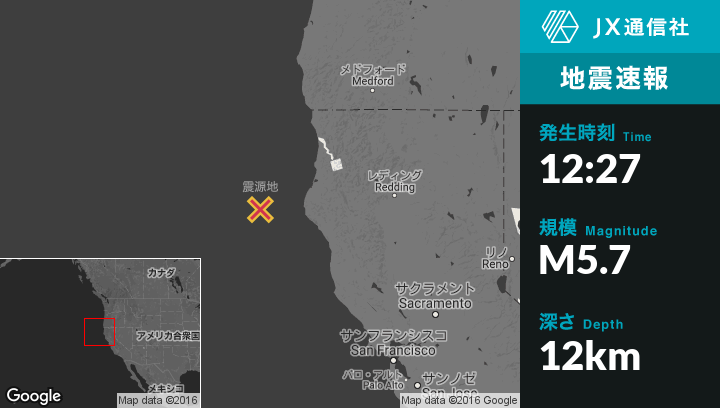 | 震源地 | カリフォルニア州のFerndaleから西94kmの地点 |