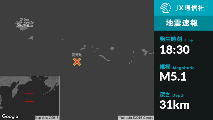| 震源地 | アラスカのKiska Volcanoから南南西87kmの地点 |