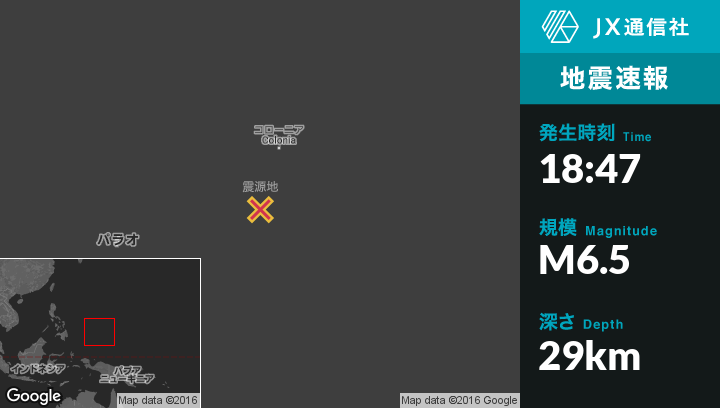 12月18日 18:47頃、ミクロネシアのNguluから南東29kmの地点でM6.5の地震がありました。