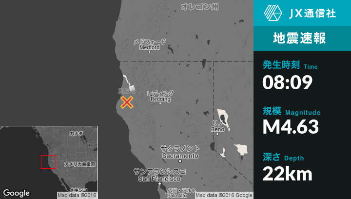 | 震源地 | カリフォルニア州のBaysideから南東19kmの地点 |