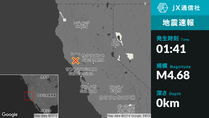 | 震源地 | カリフォルニア州のThe Geysersから西北西8kmの地点 |
