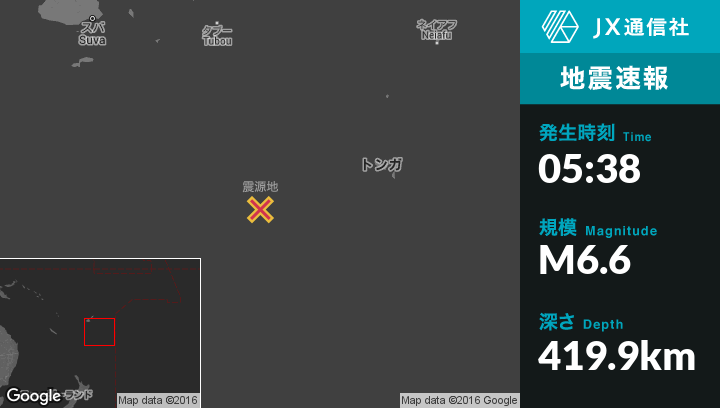 | 震源地 | フィジーのNdoi Islandから南南東169kmの地点 |