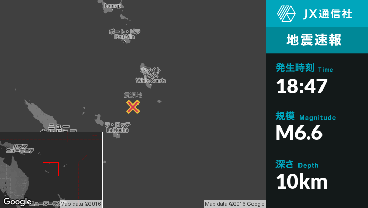 | 震源地 | バヌアツのIsangelから南西101kmの地点 |