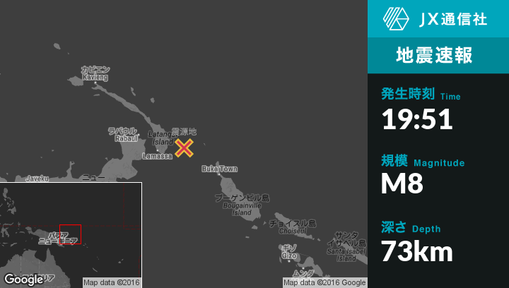 | 震源地 | パプア ニューギニア独立国のTaronから東60kmの地点 |