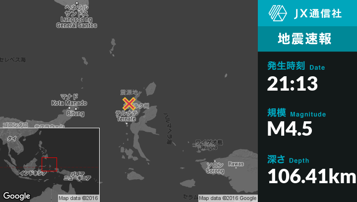 | 震源地 | インドネシアのTobeloから西57kmの地点 |