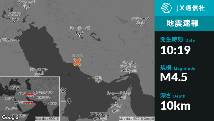 5月14日 10:19頃、イランのFiruzabadから南95kmの地点で地震がありました。