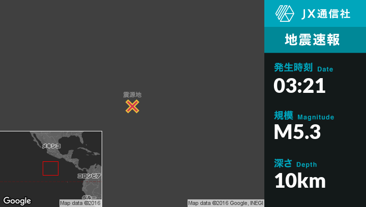 | 震源地 | フランスのClipperton Islandから東南東732kmの地点 |